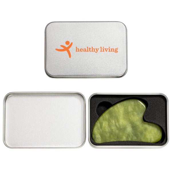 Traditional Chinese medicine tool for improved circulation and healing. Ideal for morning ritual, complements serums or moisturizers, aiding in depuffing and skin firming. Packaged in a metal case for storage and travel. Crafted from authentic jade, sculpting the jawline and cheekbones for enhanced definition. Enhances deep penetration of serums and moisturizers into the skin. Suitable for various skin types: normal, dry, sensitive or oily.